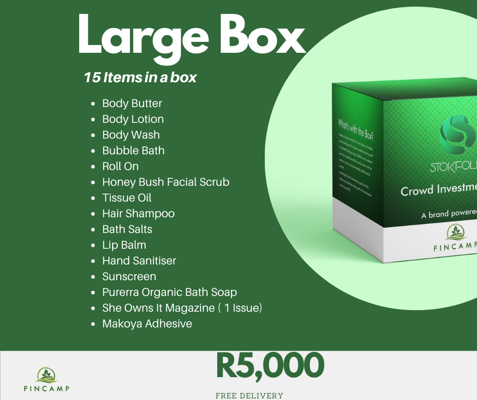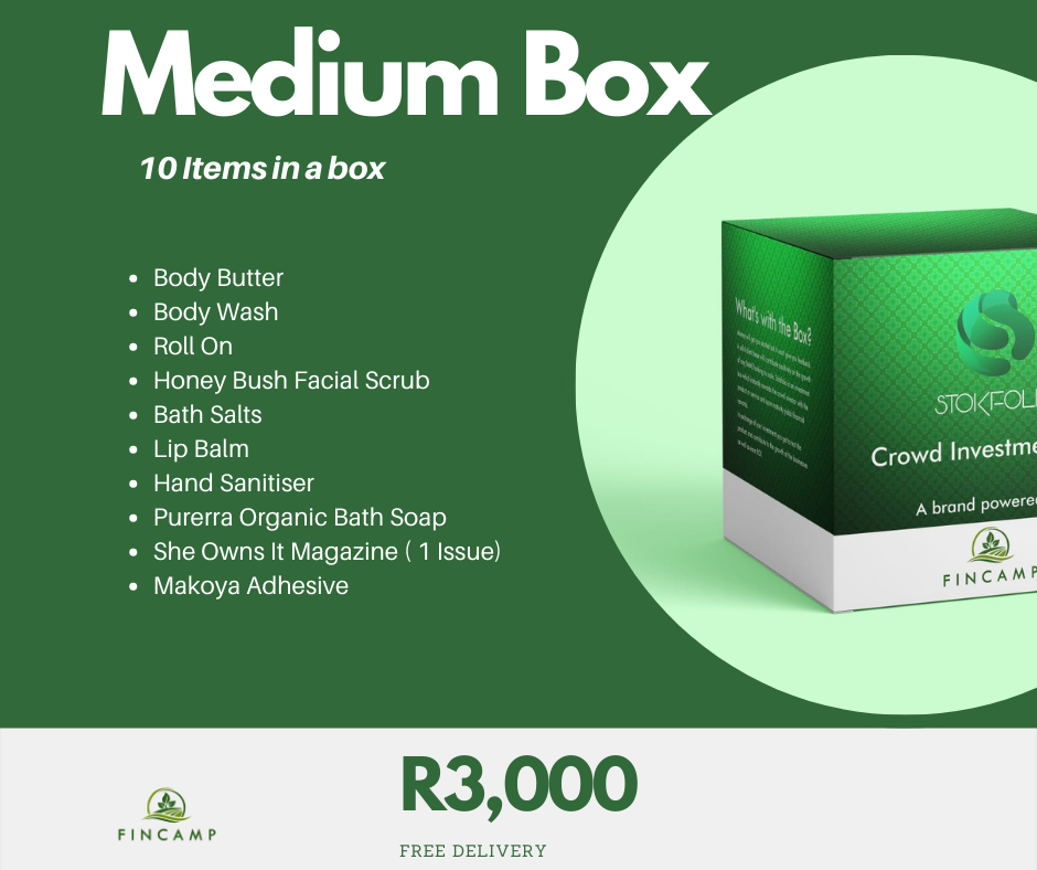 Stokfolio™ is a product of Fincamp, which links investors and benefiting SMEs. Investors receive a box filled with sample proucts of the SMEs they have decided to back with investment.